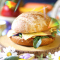 Ciabatta with Scramble Eggs, Chicken Ham, Baby Spinach Leaf and Cheese
